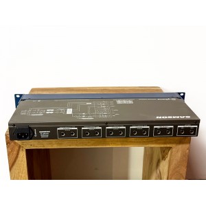 Samson S-Phone is a versatile, 4-channel, 19-inch rack-mount headphone amplifier and mixer designed for professional studio or live performance applications, enabling multiple individual headphone mixes.